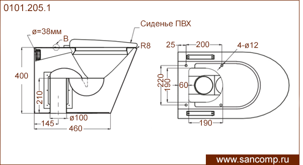 0101.205.1 Унитаз напольный из нержавеющей стали с вертикальным выпуском