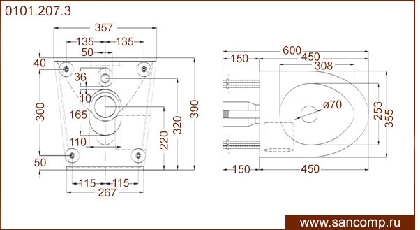 0101.207.3 Унитаз напольный из нержавеющей стали с горизонтальным выпуском