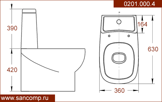 0201.000.1 Унитаз компакт из керамики с горизонтальным (универсальным) выпуском