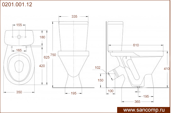 0201.001.12 Унитаз компакт из керамики с косым выпуском