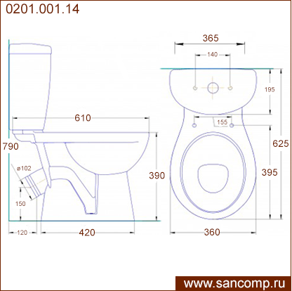 0201.001.14 Унитаз компакт из керамики с косым выпуском