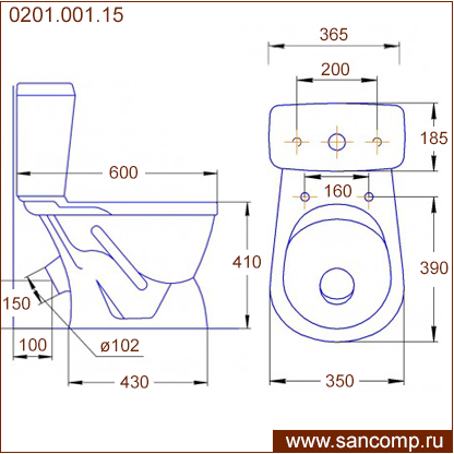 0201.001.15 Унитаз компакт из керамики с косым выпуском