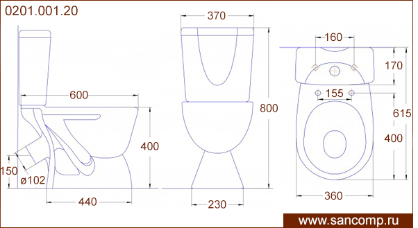 0201.001.20 Унитаз компакт из керамики с косым выпуском