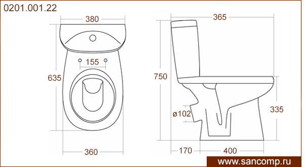 0201.001.22 Унитаз компакт из керамики с косым выпуском