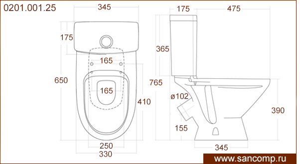 0201.001.25 Унитаз компакт из керамики с косым выпуском