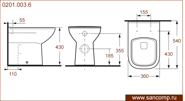 0201.003.6 Унитаз напольный с горизонтальным выпуском