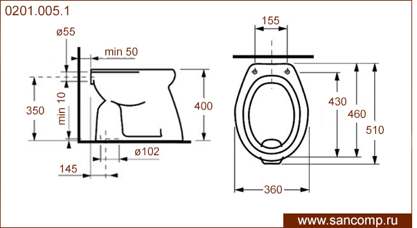 0201.005.1 Унитаз напольный с вертикальным выпуском