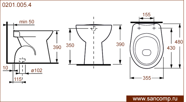 0201.005.4 Унитаз напольный с вертикальным выпуском