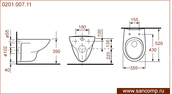 0201.007.11 Унитаз подвесной с горизонтальным выпуском