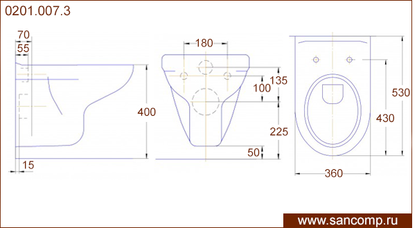 0201.007.3 Унитаз подвесной с горизонтальным выпуском