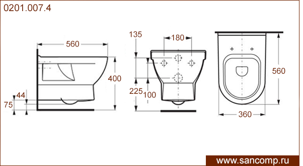 0201.007.4 Унитаз подвесной с горизонтальным выпуском