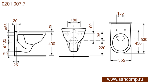 0201.007.7 Унитаз подвесной с горизонтальным выпуском