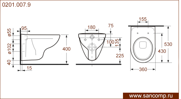 0201.007.9 Унитаз подвесной с горизонтальным выпуском