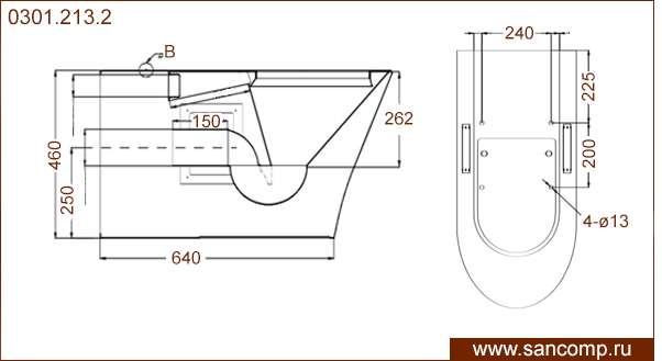 0901.213.2 Унитаз компакт из нержавейки удлиненный специализированный для инвалидов