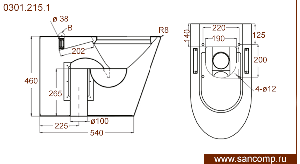 0901.215.1 Унитаз компакт из нержавейки удлиненный специализированный для инвалидов