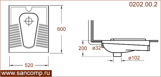 | сзади ø 32 | есть | вертикальный ø102 | |