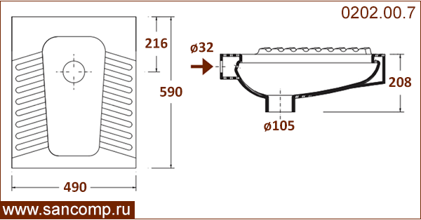 | сзади ø 32 | есть | вертикальный ø105 | |