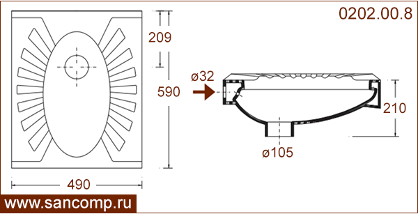 | сзади ø 32 | есть | вертикальный ø105 | |