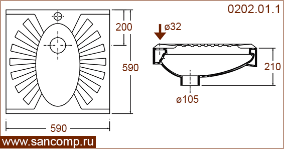 | 590х590х210 | 19,5 кг | 0,08 м³ |