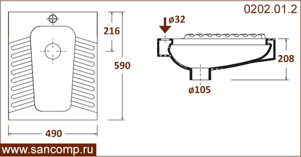 | сверху ø 32 | есть | вертикальный ø105 | |
