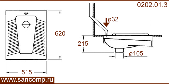 | сверху ø 32 | есть | вертикальный ø105 | |
