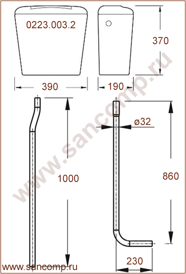 | 0223.003.2 | 0223.003.2 Бачок высокорасположенный керамика Универсал настенный | ||
