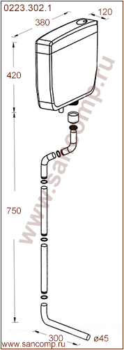 | 0223.302.1 | 0223.302.1 Бачок из АБС пластика настенный среднерасположенный | ||