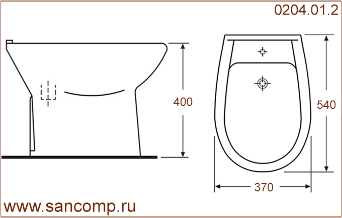 0204.01.2 Биде керамика напольное с переливом и с отверстием под смеситель | ||