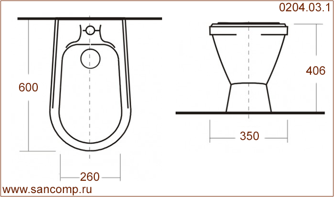 0204.03.1 Биде керамика напольное без перелива с отверстием под смеситель | ||