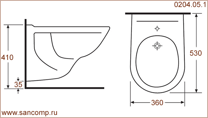 0204.05.1 Биде керамика подвесное с переливом и с отверстием под смеситель | ||