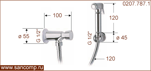 | 0207.787.1 | 0207.787.1 Кран-дозатор гигиенический душ настенный | ||