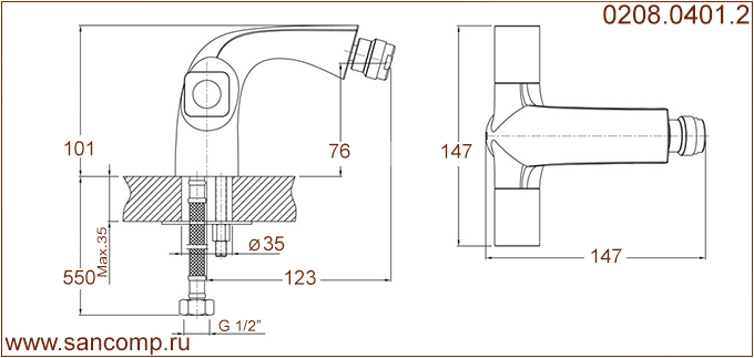 | 0208.0401.2 | 0208.0401.2 Смеситель для биде настольного монтажа, маховики, керамика | ||||||||||