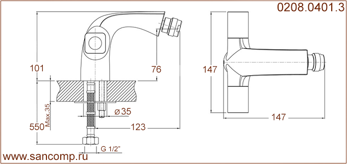 | 0208.0401.3 | 0208.0401.3 Смеситель для биде настольного монтажа, маховики, керамика | ||||||||||