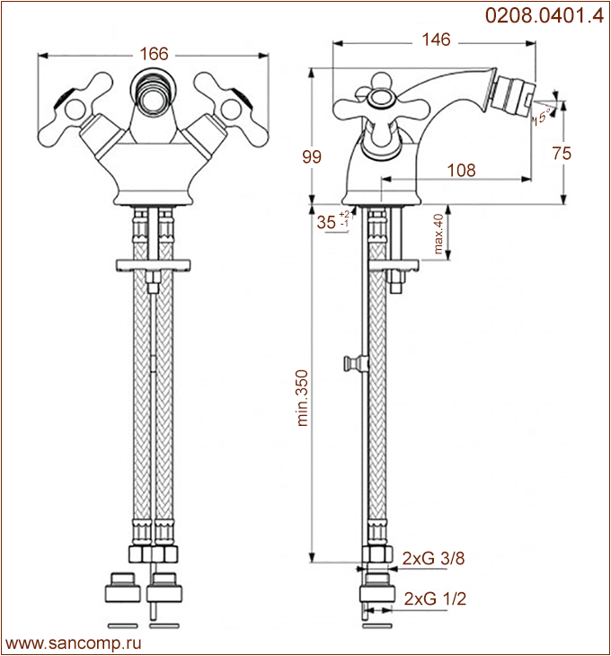 | 0208.0401.4 | 0208.0401.4 Смеситель для биде настольного монтажа, маховики, керамика | ||||||||||