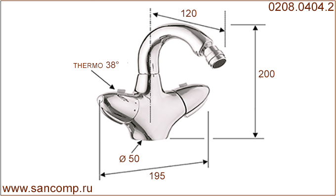 0208.0404.2 Смеситель настольного монтажа для биде. Оснащен аэратором, термостатом. С помощью термостата автоматически удерживает установленный температурный режим и стабильный напор воды.