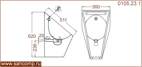0105.23.1 Писсуар из нержавеющей стали с скрытым подводом | ||