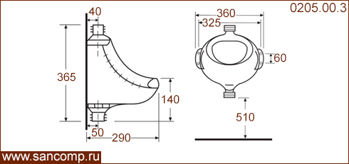 0205.00.3 Писсуар керамический с наружным выпуском | ||