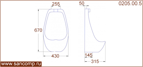 0205.00.5 Писсуар большой керамический с наружным выпуском | ||