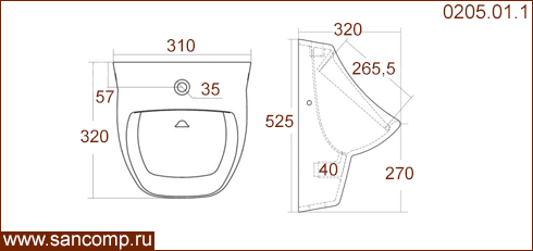 0205.01.1 Писсуар большой керамический с универсальным выпуском | ||
