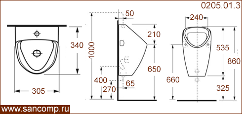 0205.01.3 Писсуар большой керамический с универсальным выпуском | ||