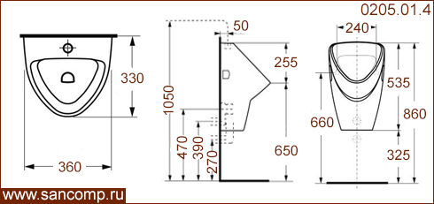 0205.01.4 Писсуар большой керамический с универсальным выпуском | ||