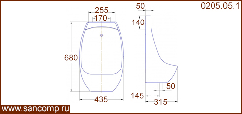 0205.05.1 Писсуар сенсорный керамический с наружным выпуском | ||