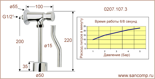 0207.107.3 Кран для писсуара наружного монтажа | ||