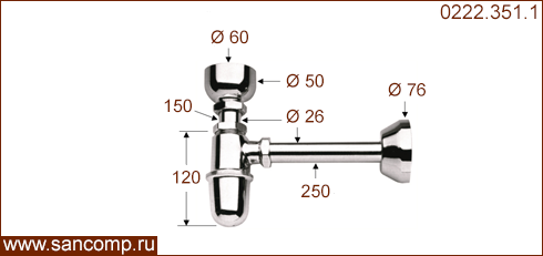 0222.351.1 Сифон для писсуара бутыльчатый | ||