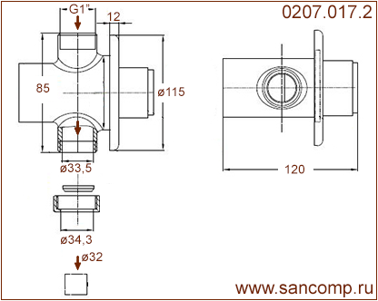 | 0207.017.2 | 0207.017.2 Кран смывной для унитазов, чаш генуя и видуаров, скрытого монтажа, дозатор | ||