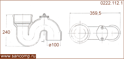 0222.112.1 сифон для Чаша Генуя чугунный вертикальный 90° | ||