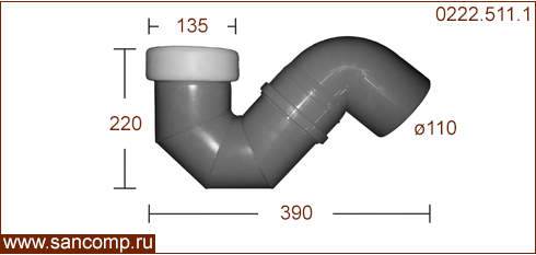 0222.511.1 Сифон для чаши генуя косой под 45° пластиковый | ||