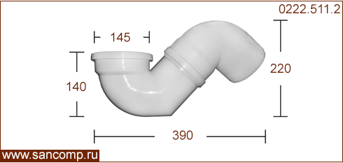 0222.511.2 Сифон для чаши генуя косой под 45° НИЗКИЙ пластиковый | ||
