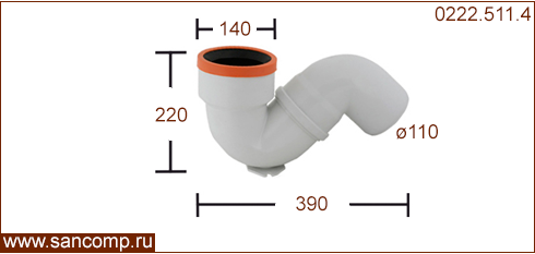 0222.511.4 Сифон для чаши генуя косой под 45° пластиковый | ||