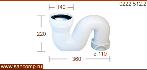 0222.512.2 Сифон для чаши генуя Пластик вертикальный 90° | ||